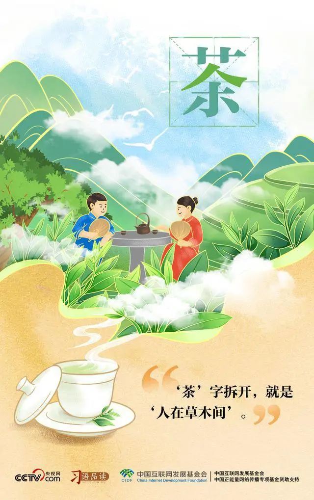 不同的交流场景,蕴藏着相通的茶文化。总书记先将“茶”字拆解为“人在草木间”,形象描绘种茶、采茶、制茶和饮茶过程中人与自然和谐共生的画面。之后,总书记又以“因茶致富”“因茶兴业”阐释茶的经济价值和赋能千行百业发展的多元价值。