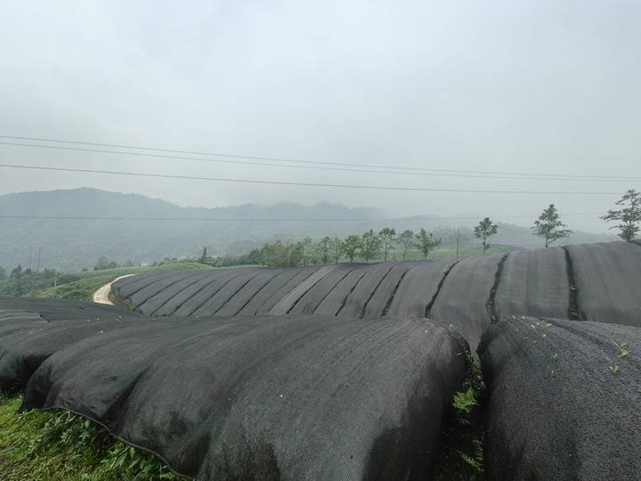 茶园遮盖黑网用于抹茶生产。