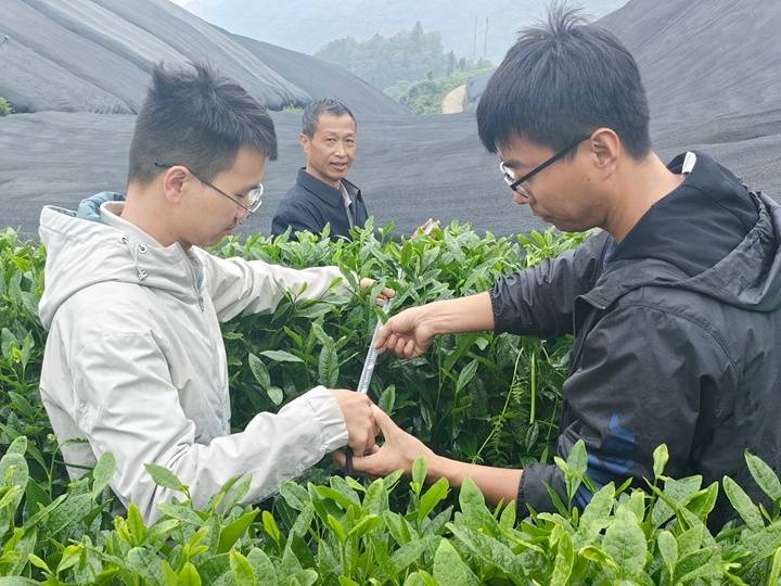 为实现抹茶产业高质量发展,茶山特邀贵州省茶叶研究所专家团队全程指导。眼下,专家们手持测量工具,仔细记录数据,在茶垄间忙着进行抹茶茶园的测产工作。“今年是我们在仁怀做的首个抹茶茶园优质高效生产集成技术示范基地,我们前期通过科学的冬季和春季管护,加上遮阴技术,做好茶园全流程精细化管理工作,确保产量达标和品质稳定,今天我们通过机械化采茶进行测产,亩产平均可以达到440公斤,我们将继续通过科学的管理和技术保障,让仁怀首个抹茶生产基地实现产量与品质的双重突破。”贵州省茶叶研究所助理研究员杨肖委说。
