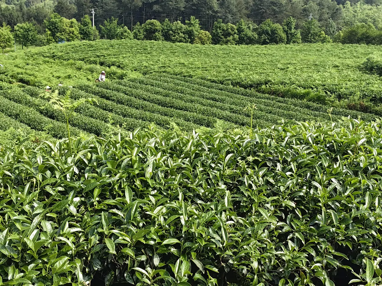 5月21日雨过天晴,记者一行来到了天贵茶园。走进天贵茶园,一片绿意盎然的景象映入眼帘。茶园间,茶农们分布在不同区域采摘茶青,一派热闹的景象。