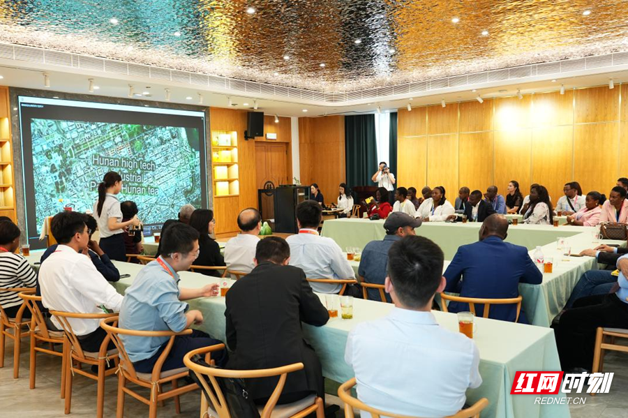 在湖南省茶业集团一楼茶文化中心,外国记者们全面了解湖湘茶从深山秘境走向国际市场的发展历程。在三楼现代化技术中心,外媒记者们近距离观察了茶叶精深加工流程与前沿科研应用,对湖南茶产业以创新驱动高质量发展的实践印象深刻。在跨越时空的展陈中,他们系统了解中国茶文化特别是湖湘茶业从古至今的辉煌历程与深厚积淀。品茗交流环节里,优美且精湛的湖南茶艺表演赢得阵阵赞叹,外媒记者们深度感受“绿色黄金”的独特魅力。 活动中,湖南省茶业集团董事长、茶博馆理事长周重旺就中国茶叶出口情况、国际合作、非遗技艺传承、中非特色饮品交融和茶叶未来发展趋势等话题,同参访团展开坦诚对话。 活动旨在通过中国茶文化展示、茶艺表演等,以茶为纽带,共叙中非情谊,深化文明对话,促进中非之间的文明互鉴、民心相通。最终,活动在融洽欢愉的交流中落下帷幕。 此次参访,不仅让非洲记者朋友深度感知了中华茶文明的博大精深与湖南茶产业的蓬勃活力,更通过“茶叙外交”这一独特形式,为中非人民的心灵相通及深化务实合作注入了新暖流。