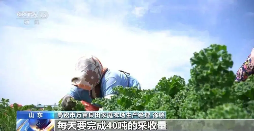 高密市万亩良田家庭农场生产经理 徐鹏:最近客户要的数量比较大,时间也比较急,每天要完成40吨的采收量。