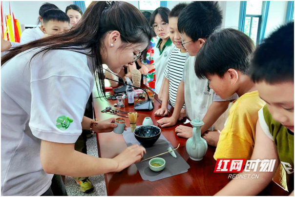 红网时刻新闻7月16日讯(记者 彭超 通讯员 杨阳 张欢)7月11日至13日,湖南女子学院点茶成“晶”项目组走进娄底市新化县渠江源村,为当地中小学生打造了一场特色实践课堂,让红色基因、湖湘茶文化与非遗在孩子们心中生根。