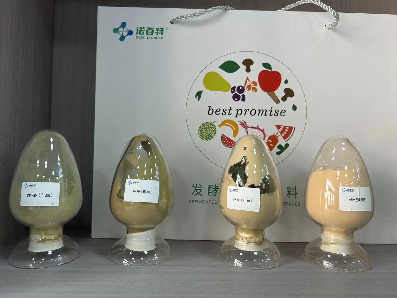 金沙县智农生物科技有限公司生产的抹茶粉和茶多酚(龙媛 摄)