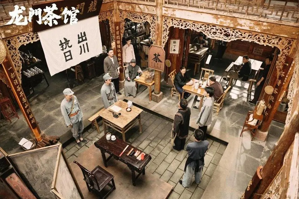 该剧制作考究,导演唐少宇带领团队从构思、剧本撰写到实地拍摄,力求故事真实可信。剧中,从茶馆布局、器物陈设到人物妆容,均参照20世纪三四十年代老照片与文献档案,同时兼顾视觉审美。在该剧中,茶馆不仅是三教九流品茗闲谈的市井缩影,更是保家卫国的隐形战场,从组织募捐到传递情报,从支援前线到投身战斗,生动诠释了“茶馆即战场”的主题,勾勒出抗战大后方全民抗战的集体记忆。