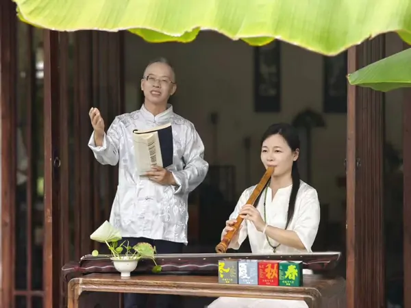 寒露,是秋日深处的露华凝结,是冬日前奏的轻吟低语。活动伊始,朗诵达人、潇湘诗会“诗歌义工”周青梅与于安全以合诵《你好,寒露》拉开序幕,用温润而富有张力的声音,将节气的清冷与人间温情的交织娓娓道来,瞬间唤醒了观众对自然时序的感知与敬畏。