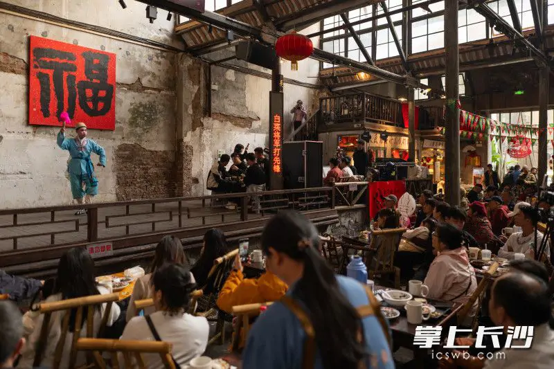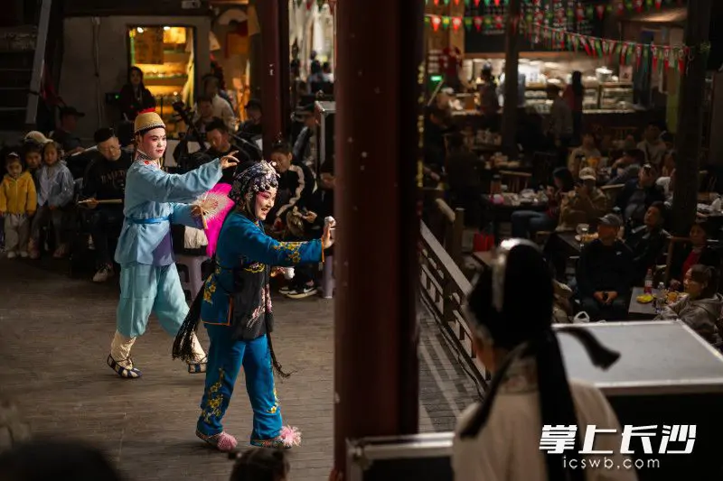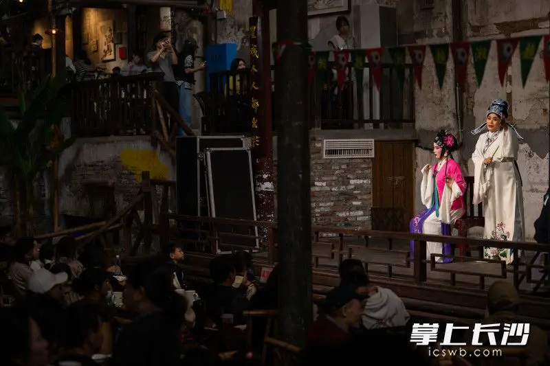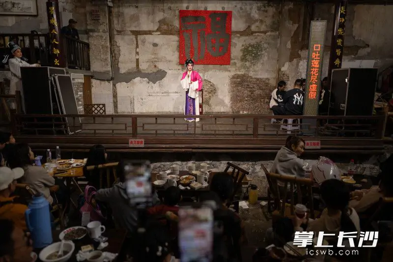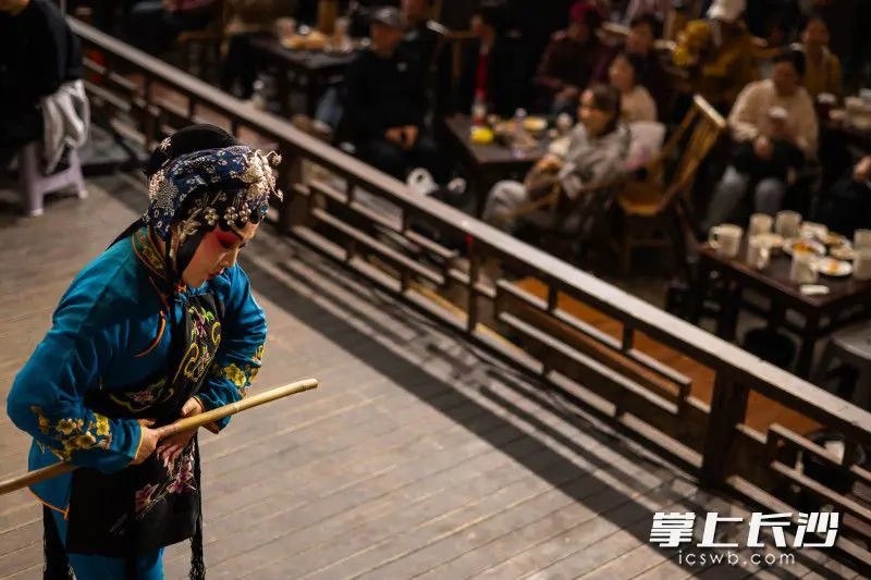 10月25日下午,芙蓉区东茅街茶馆,云梦山海·东茅街茶馆首届戏曲艺术节开幕。来自市花鼓戏传承保护中心演员们,以一出出精彩演出博得了市民游客阵阵掌声。市民游客在喝茶听曲之中,体验老长沙人消磨时光的好方式。