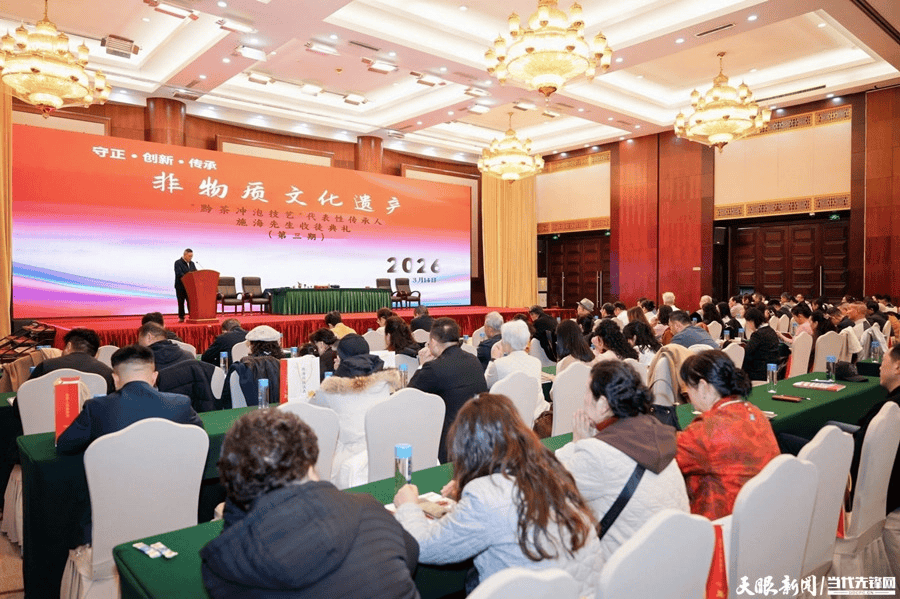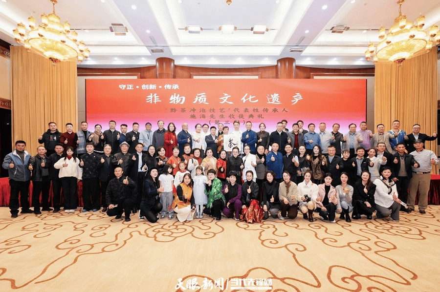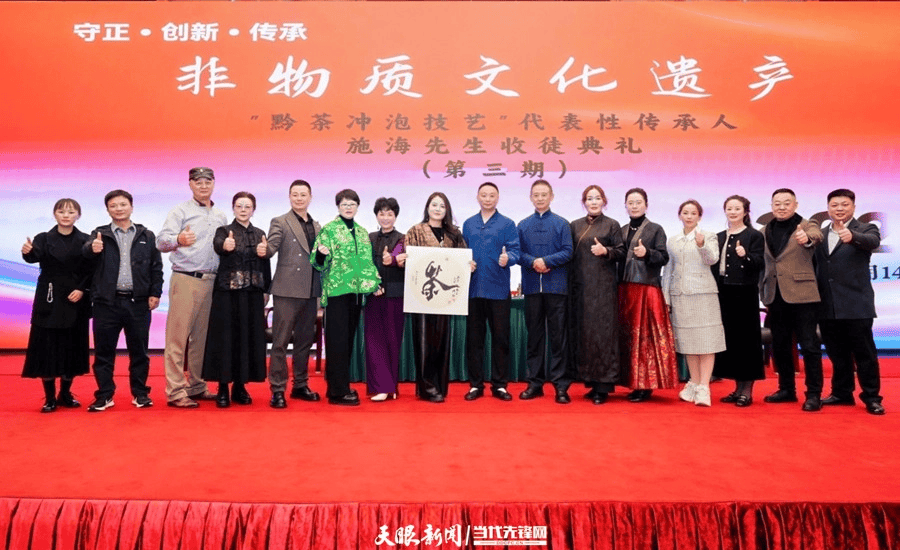 3月14日,一场传承和弘扬非物质文化遗产“黔茶冲泡技艺”的收徒仪式,在贵州国际会议中心贵州厅隆重举行,在来自全国各地500余名嘉宾见证下,非遗技艺代表性传承人施海将10名对黔茶心向往之的茶人收入麾下,聚力助推黔茶飘香四海。