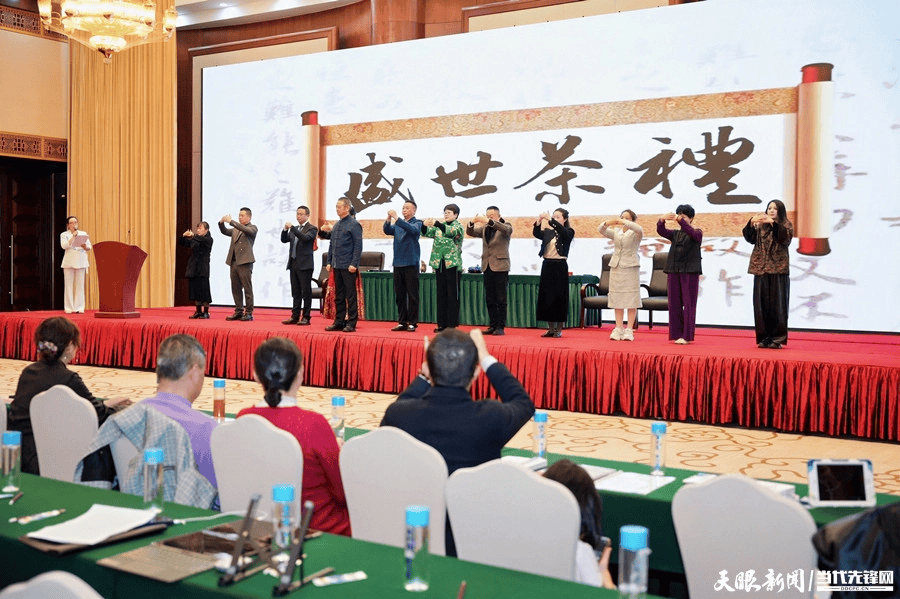 在收徒仪式上,作为嘉宾代表,国资委商业饮食服务业发展中心茶馆行业办公室副主任钱志云结合茶行业和茶馆业作了行业发展主旨分享,贵州省科学与健康协会会长林光进现场发言。作为徒弟代表,贵州交通职业大学教授苏艺作了“非遗数字资产转型之路的思考”主旨报告,百万圆桌MDRT保险业中国区主席、中国平安总部中央导师库特级专家、新未来全球家族办公室创始人王鲁作了主旨演讲,表达了致力于非遗黔茶技艺传承的信心和决心。