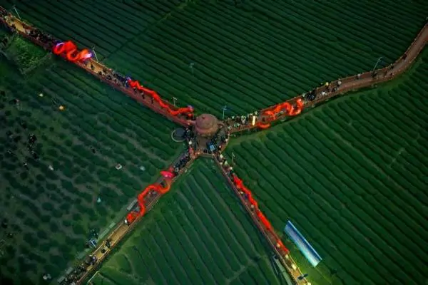 产业有了底气,文化就得跟上。钟灵镇没忘当地的老传统,把点路烛、舞龙灯、祈福这些民俗活动搬到了茶叶基地,让传统文化给茶产业“添彩”。在特殊时节,村民们就在茶田间点起路烛,烛光与星光相映,龙灯在茶垄间穿梭,既是祈求丰收平安,也是大家聚在一起共话发展的好机会。